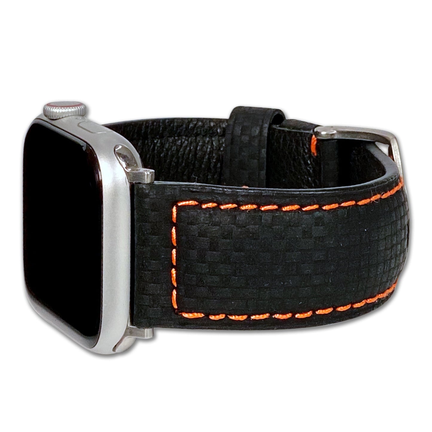 Panatime Black Carbon Fiber Style Watch Strap with Orange Stitch for Apple Watch