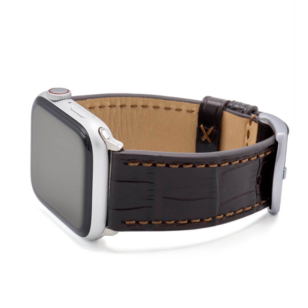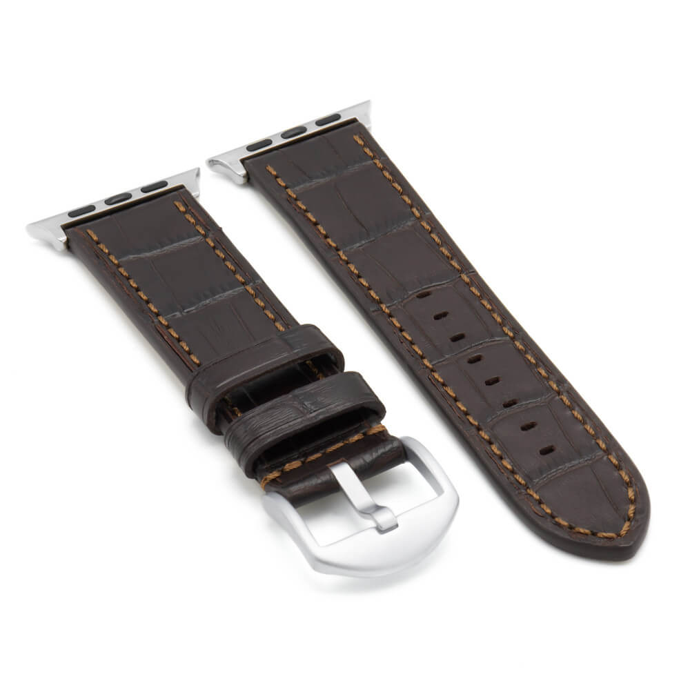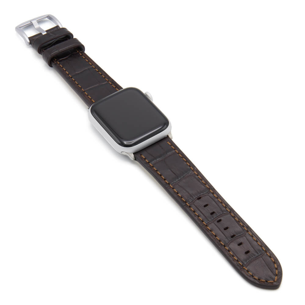 Apple Watch | Embossed Leather Watch Band | Gator | Mocha | Match Stitch