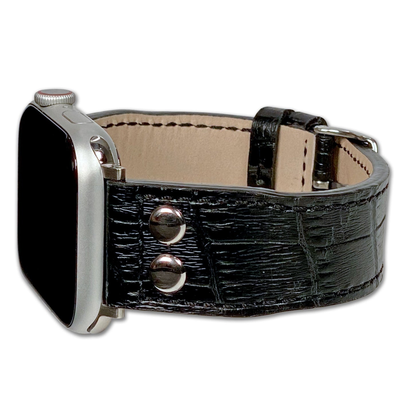 Apple Watch | Embossed Leather "Gator" Pilot Style Watch Band | Black | Match Stitching