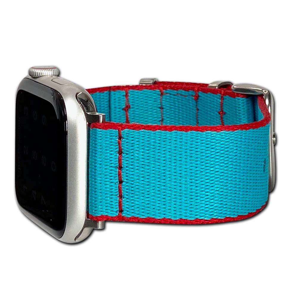 Apple Watch Watch Band | Seatbelt | Two-Piece | Teal | Red Stitch