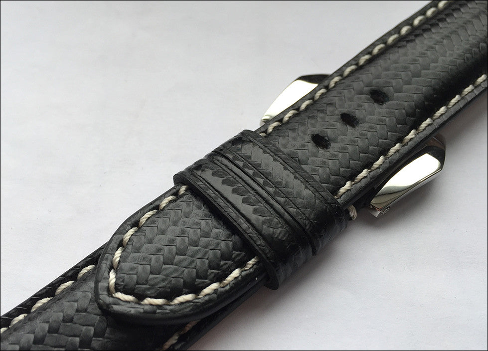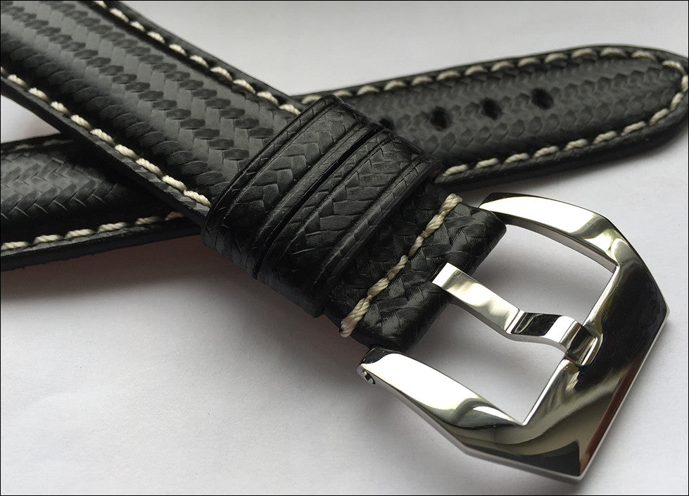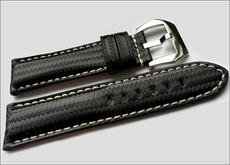 Black Carbon Fiber Style Watch Band | White Stitch | For Panerai