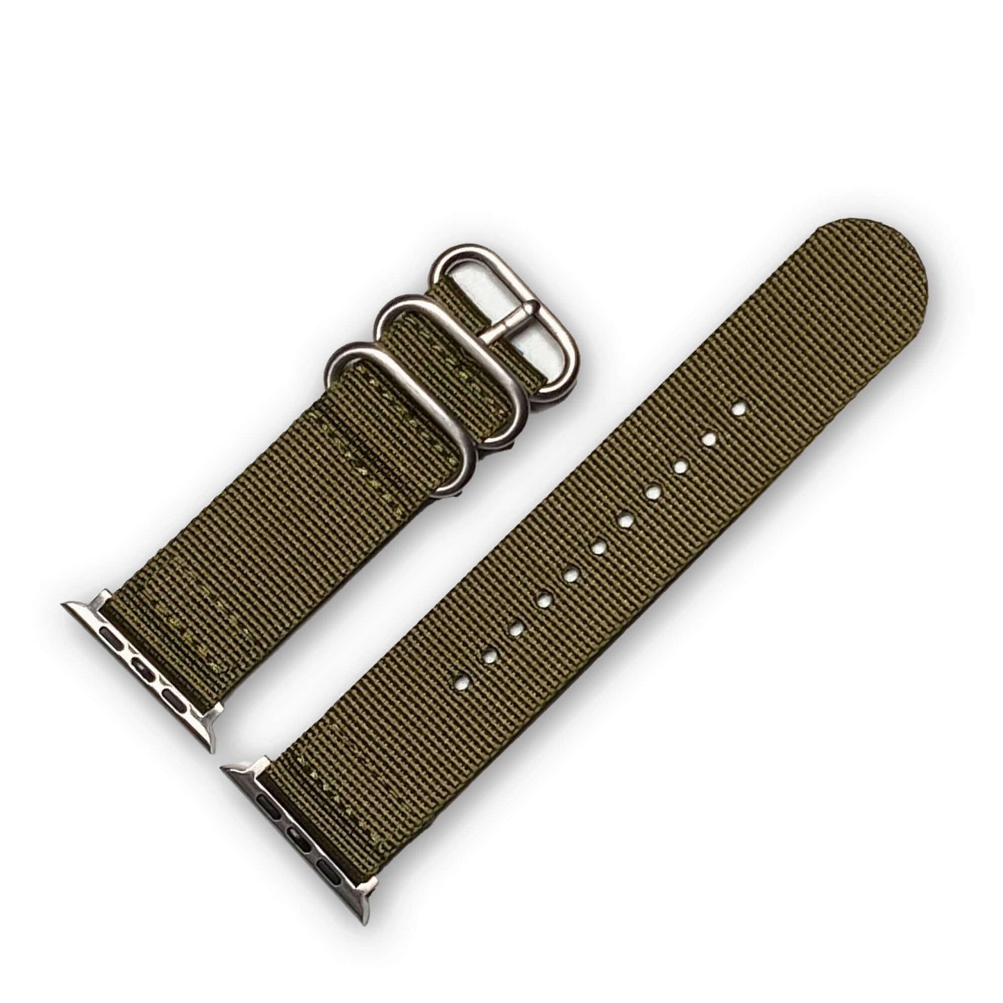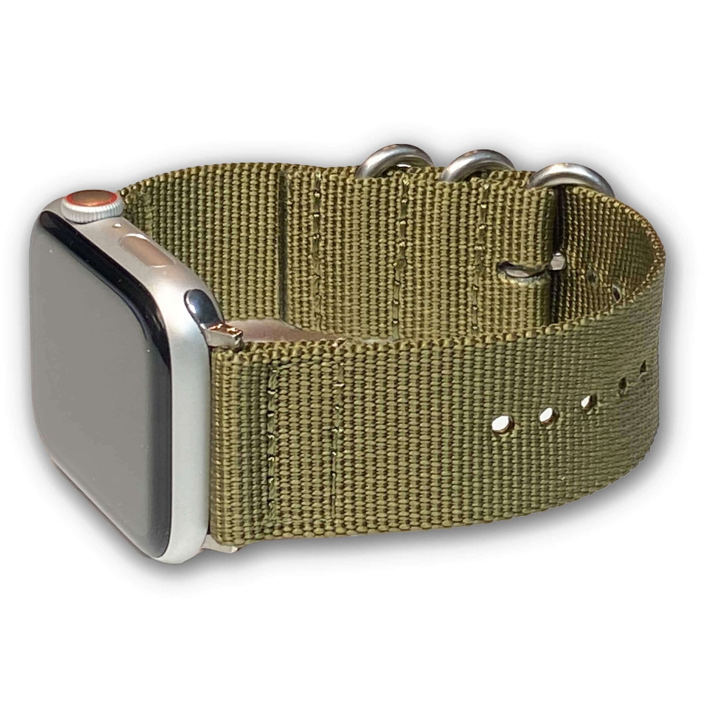 Brigade Olive Two-Piece Ballistic Nylon Watch Strap with Brushed or PVD Hardware for Apple Watch