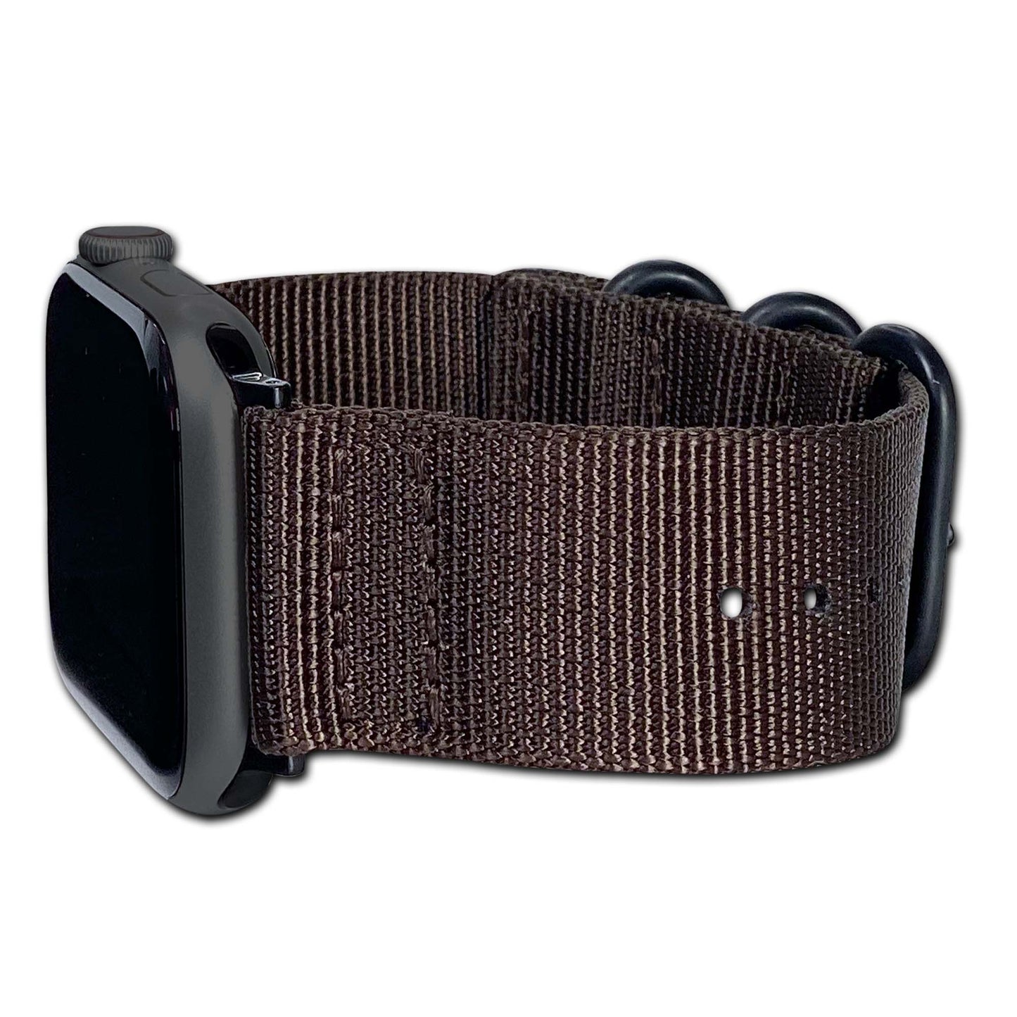 Brown Ballistic Nylon Watch Band, PVD Rings for Apple Watch