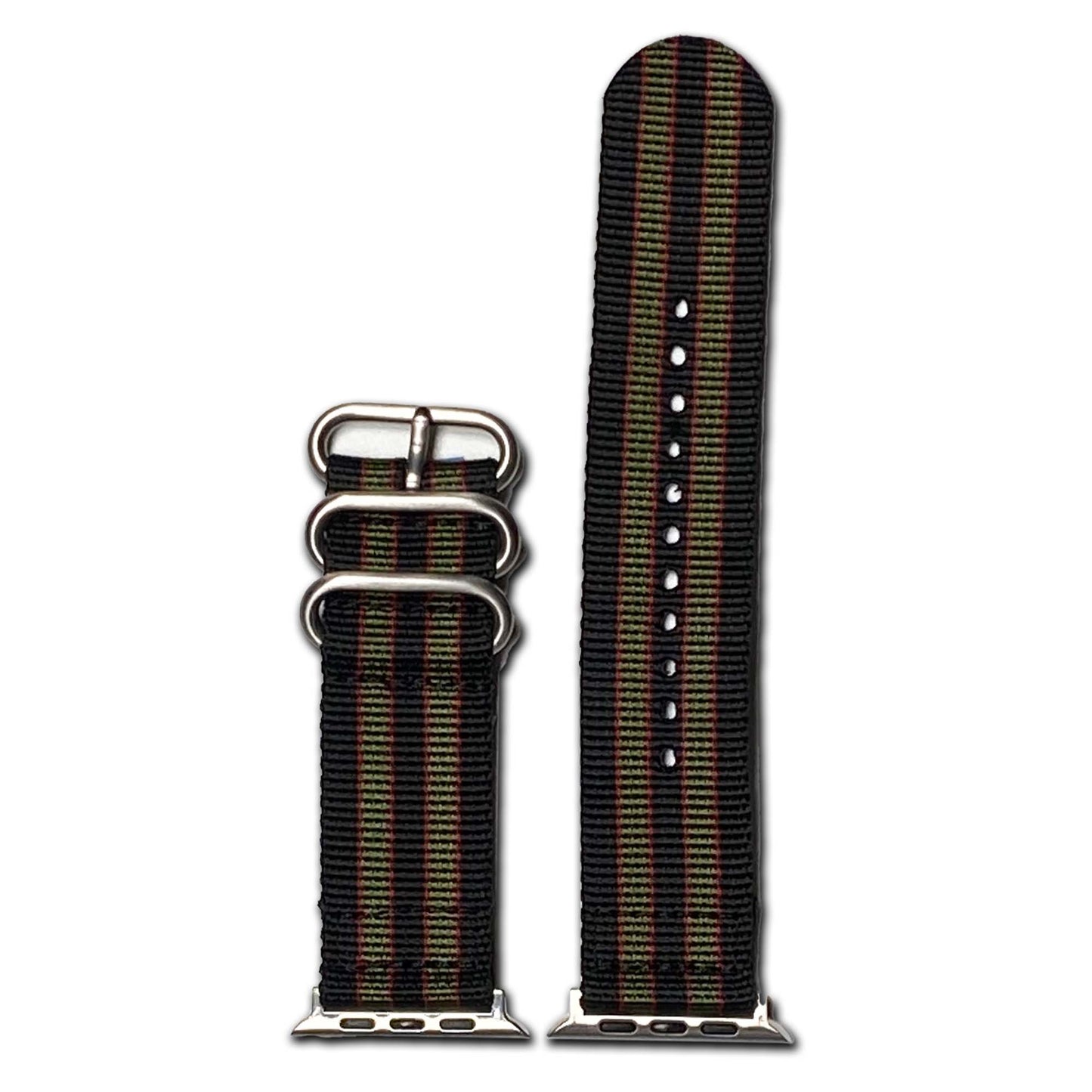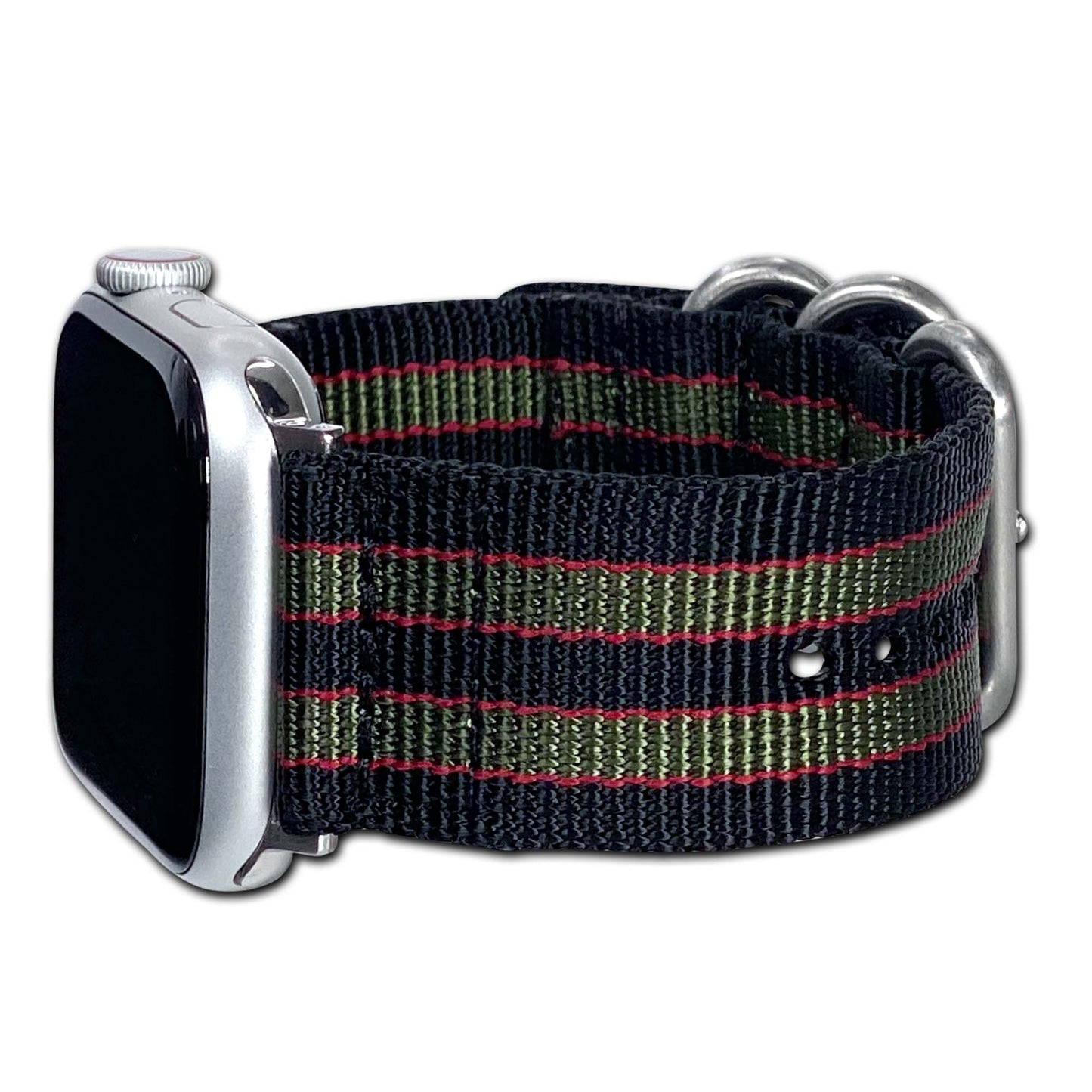 MI6 Bond Black & Olive & Red Two-Piece Ballistic Nylon Watch Strap with Brushed Hardware for Apple Watch