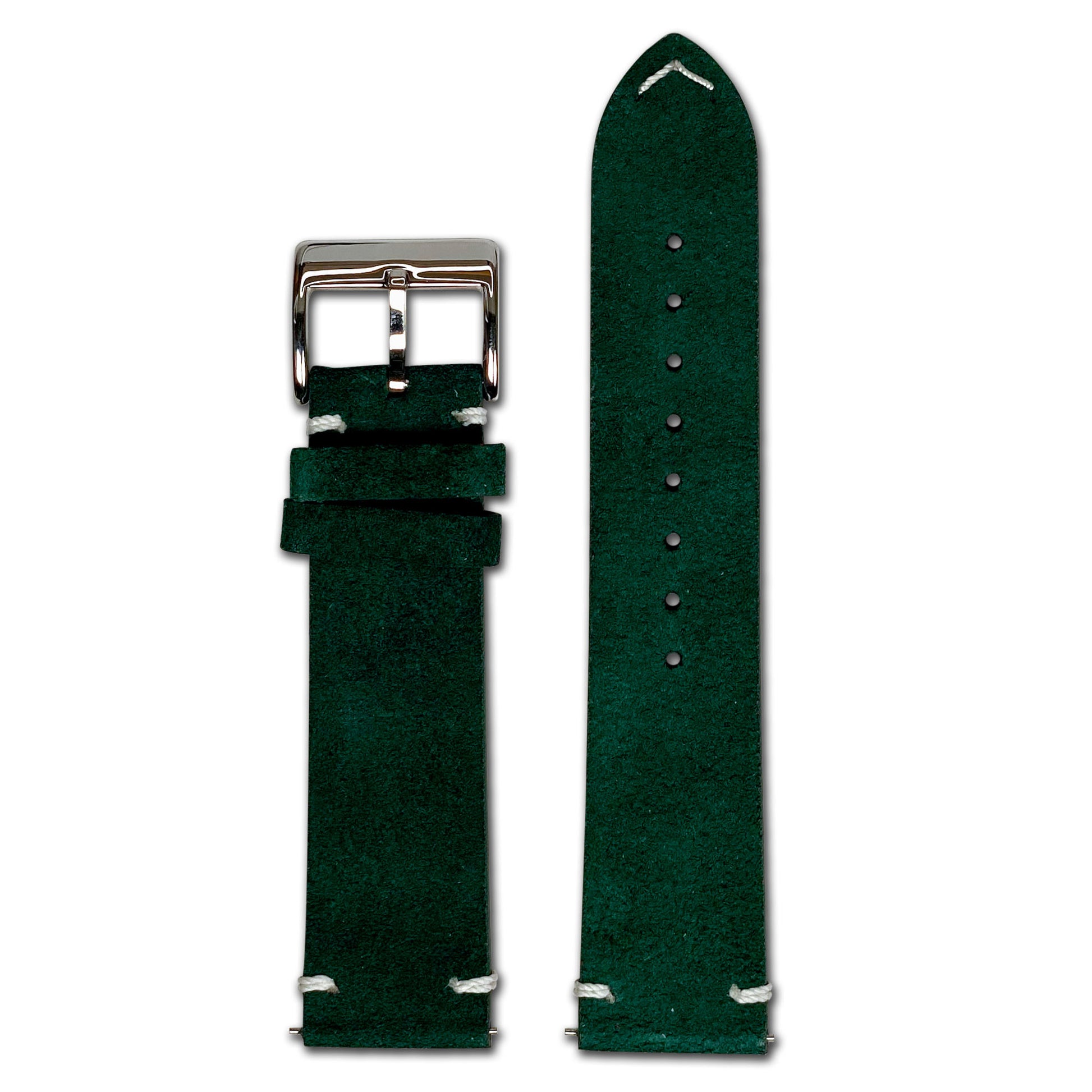 Quick Release Watch Band | Suede Leather | Minimal Stitch | Dark Green